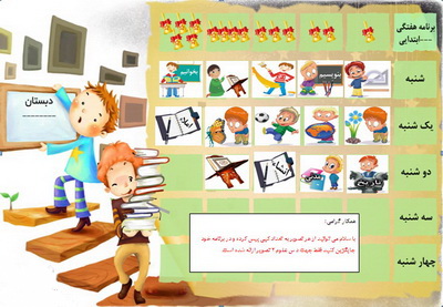 یک برنامه کلاسی تاپ و زیبا براتون آماده است در قالب یک صفحه word .لطفا پس از دانلود متناسب با ساعات کلاسی خودتون از روی هر تصویر یه copy بگیرید و در قسمت مربوطه paste کنید تا برنامه کامل بشه.